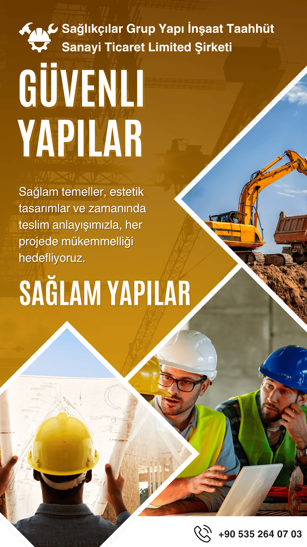 Sağlıkçılar Grup olarak yalnızca yapılar inşa etmiyoruz; insanların güvenle yaşayabileceği, huzuru ve konforu bir arada bulabileceği yaşam alanları oluşturuyoruz. Her projemizde kaliteli malzeme, modern mimari ve mühendislik gücünü bir araya getirerek, sağlam temeller üzerine uzun ömürlü yapılar kuruyoruz. Amacımız, sadece bugünü değil, geleceği de inşa etmek.